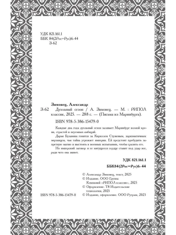 Исторический роман Александра Зимовца о чести, поединках и опасных интригах. В разгар дуэльного сезона каждое решение может стать роковым.