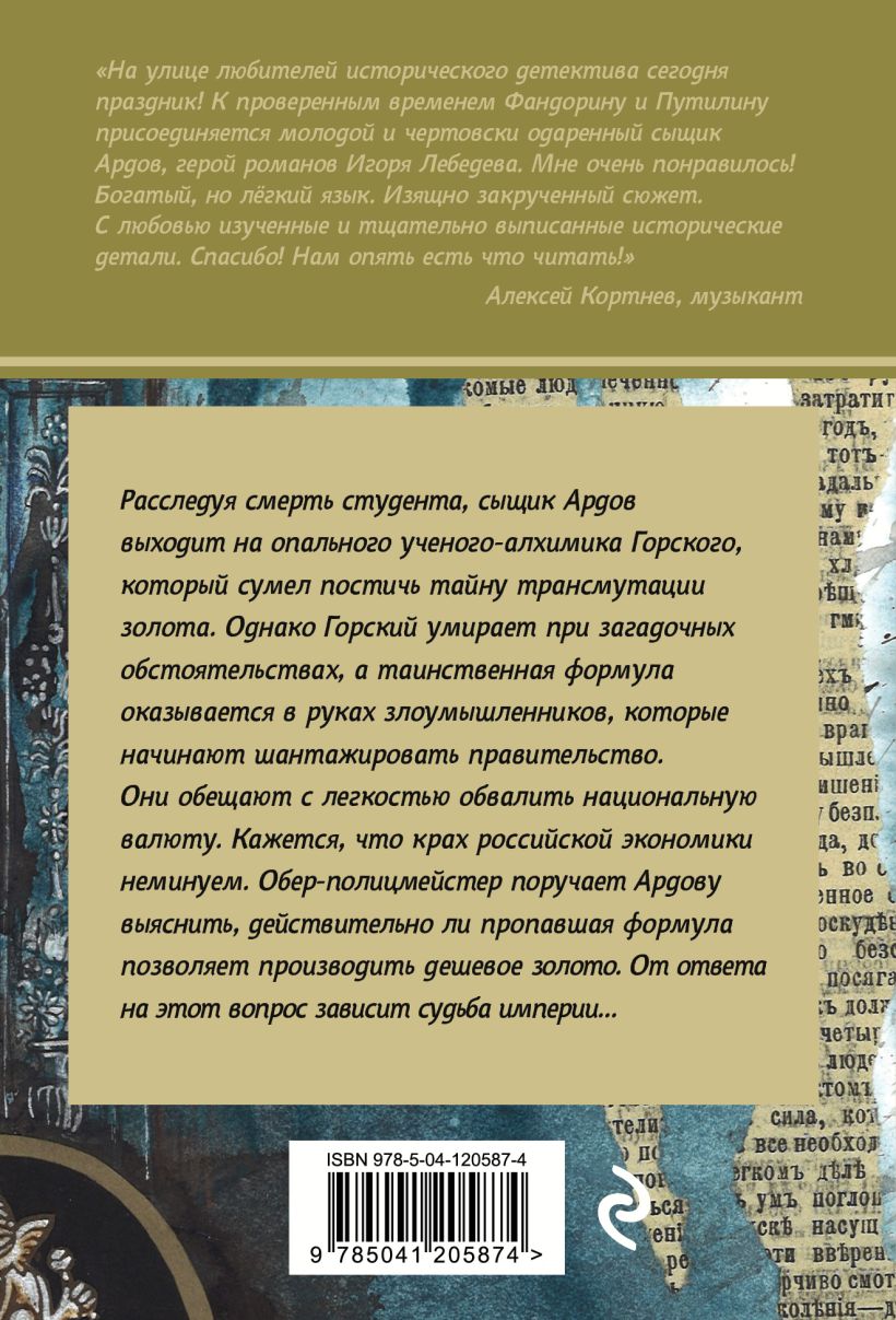 Дореволюционный детектив: сыщик Ардов расследует загадочную смерть студента и разбирается с алхимической формулой, способной обрушить экономику империи.