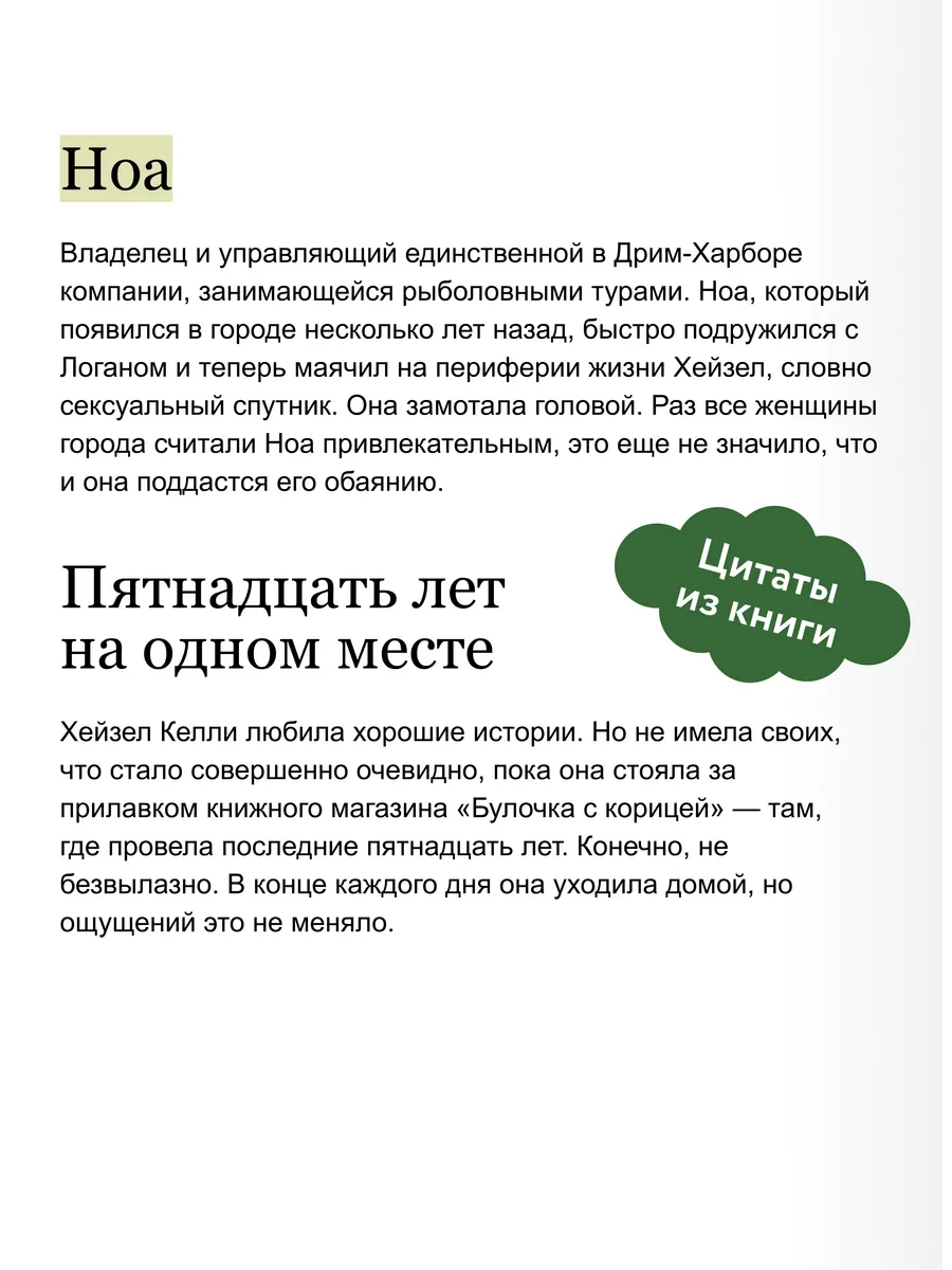 Хейзел Келли уже много лет владеет книжным магазином «Булочка с корицей» в прибрежном городе Дрим-Харбор. Её собственная жизнь — размеренная и предсказуемая, пока в отделе любовных романов не начинают появляться таинственные зашифрованные послания. С помощью ноа-рыбака и разгадок по всему городу Хейзел начинает своё самое неожиданное приключение.