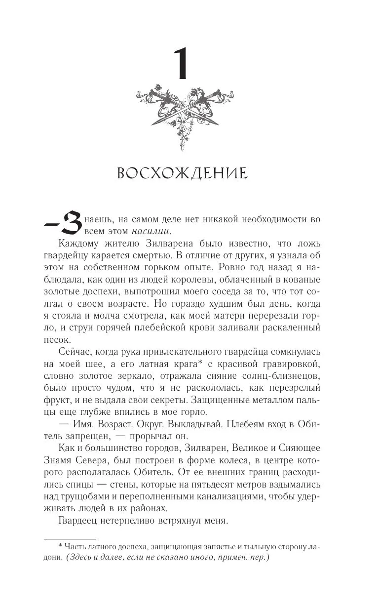 О нет, я не похожа на героиню баллады. Мне приходится воровать, чтобы мы с братом не умерли с голоду. И убивать, иначе убьют меня. Скажу честно, я отлично это умею – ведь я до сих пор жива. Здесь, под палящими солнцами Серебряного города, где бедняки дерутся за глоток воды, а бессмертная королева без колебаний казнит кого угодно, это уже напоминает чудо. Еще я слышу шепот металлов, и такой секрет может стоить мне жизни: любая магия в нашем городе под запретом. Но даже в самых тяжелых обстоятельствах не стоит отказываться от надежды, правда?