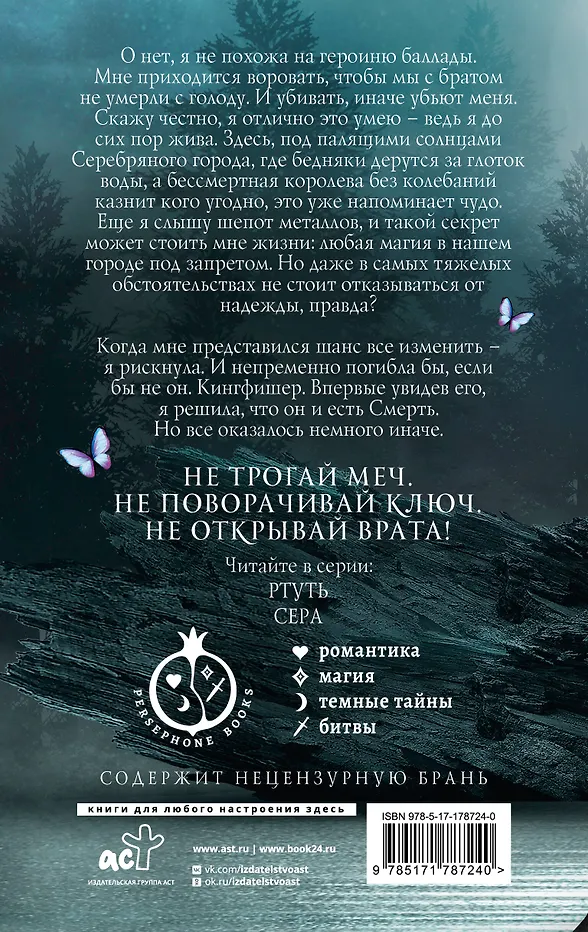 Фэнтези Калли Харт о девушке, выживающей в жестоком Серебряном городе, где магия под запретом. Тайный дар, борьба за жизнь и встреча с загадочным Кингфишером меняют её судьбу.